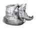 Tavallisen malliset kallokkaat. Kappaleet ommeltu useammista, epäsäännöllisistä kappaleista. Jalkineen suulla epäsäännöllisen levyinen, lyhytkarvaiseksi leikattu vyöhyke.