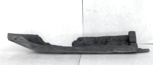 Sonta-ahkio, yhtä puuta, pohjasta sekä takaseinästä suuri pala lohjennut.