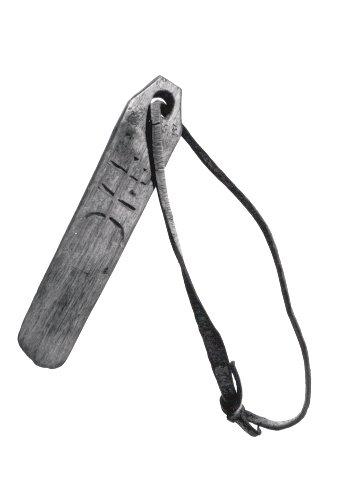 Kilkula "kelgul", puunliuskare porontaljasta leikatussa ohuessa kantimessa. Toinen puoli koristeltu kolmiosyvennysleikkauksin. Yhdestä puunkappaleesta veistetty alaspäin kapeneva litteä levy, jonka yläpään kulmat on viistottu. Alapää on pyöristetty. Toisessa lappeessa on puumerkki, toisessa kolmiolovileikkauksia. Ripustusreikään pujotettu lenkiksi solmittu nahkasuikale, jossa on karvat jäljellä.