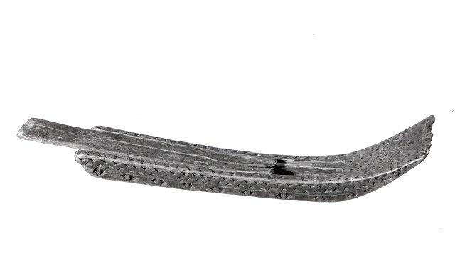 Penaalin tapainen, työntökannella varustettu, kolmiosyvennysleikkauksin tunnustettavalla tavalla koristettu.