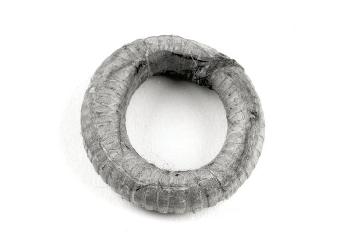 Keränpohjallinen "sumn-kiezölm", renkaaksi kierretty hanhen kurkkutorvi, pieniä kiviä sisällä rapisemassa.