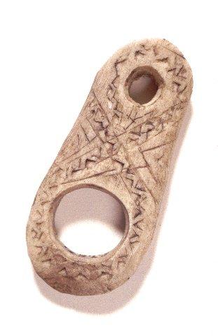 Suopunginrengas, pitkänomainen, päistä pyöristetty luu- tai sarvipalanen, jossa kaksi erisuuruista reikää. Koristettu murtoviivaleikkauksin.