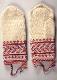 Naisen vanttuut, neulotut, uudet, mutta perinteellistä kolttien mallia, jota käytetty Petsamon Suonikylässäkin. Koristeaihe ns. vene -mallia.