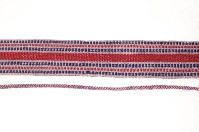 Kengänpaulat, tavalliset paulat, ei ns. koriat paulat. Tiuhdalla kudotut, valkoisella pohjalla pitkittäisiä punaisia ja sinisiä raitoja, paulojen päissä punainen verkakaistale. Paulojen toisessa päässä on 26 l. 16,5 cm:n pituinen sisnanyöri ja toisessa päässä taas punaisesta, sinisestä ja valkeasta langasta palmikoitu n. 224 cm:n pituinen nyöri. Näitä lappalaisnaiset tekivät ja myivät poromiehille.