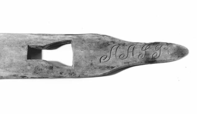 Paksuus paakan alaosassa vain 0,5 cm. Alaosassa on 2,7 cm leveä ja 1,2 cm korkea kaarevasti kolmiomainen reikä hihnan pujottamista varten. 36 cm:n päässä tästä reiästä on lovettu reikä, joka on yläosastaan 3,5 cm leveä ja kapenee viistosti kohden 1,7 cm leveää alaosaa. Tämän reiän koko pituus on 5,7 cm. Tähän yläreikään pujotetaan paakkojen toinen vastapuu, ks. esim. T.I. Itkonen "Suomen lappalaiset" kuva 199,4. Tämä paakkojen toinen puu on suoristunut, joten se täytyy ajatella käytössä kaarevaksi. Paakan kapeneva yläkärki ulottuu 16 cm:n päähän yläreiästä.