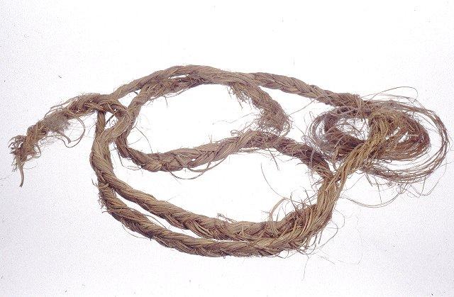 | museoesine: kenkäheinästä palmikoidun nuoran näyte |