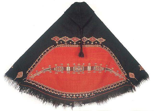 Hupullinen viitta (berb. akhnif, mon. ikhnafen), joka on kudottu tummanruskeaan villaloimeen. Selkäpuolella on hyvin suuri punainen silmäkuvio, jonka keskellä poikittain kulkee monivärinen geometrisaiheinen kudottu kuvioraita. Silmäkuvion on uskottu suojaavan pahalta silmältä. Vaatteen alareunassa on tasaisin välimatkoin toistuvia monivärisiä kudottuja vinoneliöitä, joiden langanpäät näkyvät nurjalla puolella. Rinnan kohdalla molemmin puolin on geometrisaiheiset neliön muotoiset mustalla kirjotut kentät. Etureunat on kantattu punaruskeilla nahkakaitaleilla. Vaate on päälle pujotettava; se on ommeltu kiinni lyhyeltä matkalta rinnan kohdalta. Hupun päästä roikkuu tupsu, ja alareunassa on hapsut.