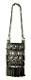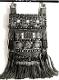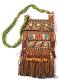 Ruskeasta nahasta ommeltu suorakulmainen litteä laukku, jonka ylin osa taipuu eteen läpäksi. Etupuolelle on ommeltu tasku, jonka läpän alaosa muodostaa laukun keskimmäisen koristekentän. Alareunassa on erillinen koristeläppä. Laukun etupuoli on koristeltu erivärisillä (vihreä, punainen, valkoinen) nahoilla applikoiduin, kirjotuin ja läpileikatuin kuvioin, mm. kahdeksansakaraisin tähdin ja holvikaariaihein. Koristekenttien ja ylimpien kuvioiden reunoja ympäröivät moniväriset puuvillahapsut. Alareunassa - samoin kuin ylhäällä sivuilla - on pitkät punotuista nahkanauhoista, hapsuista ja tupsuista muodostuvat kappaleet. Taakse laukun yläosaan on ommeltu nahkalenkit kantohihnaa varten. Erillisenä hankittu kantohihna on kirkkaanvihreä puuvillalankavyyhti.