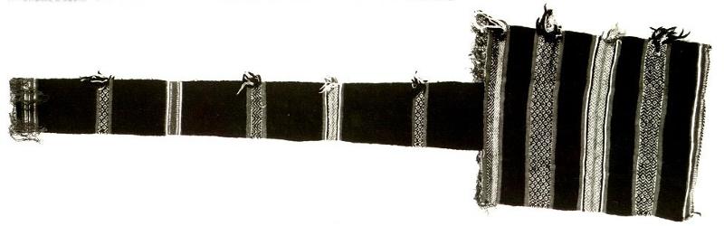 Mustaan villaloimeen kudottu kuderipsisidoksinen mustapohjainen kangas, joka on toisesta päästä neliömäinen ja toisessa on pitkä kapea kaitale. Kangas on tarkoitettu aseen koteloksi (berb. lgómd), mutta sitä ei ole ommeltu yhteen. Mustalla pohjalla on raitaryhmiä, joissa on viininpunaiset reunaraidat ja keskellä mustavalkoinen, punavalkoinen tai musta-puna-valkoinen siksak- tai vinoneliöaiheinen pujotusraita, jonka kudelankojen päät näkyvät kankaan reunassa. Sekä leveän että pitkän osan päässä on loimilankahapsutus. Vinoneliöt symboloivat silmiä. Niiden, samoin kuin siksak-linjan, on uskottu suojaavan esinettä ja sen omistajaa pahalta silmältä.