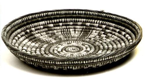 Kasvinjuurista nauhatekniikalla punottu laakea vatimainen tarjotin (berb. isuggi, diminut. tisuggit). Tummanruskeilla kuiduilla on astiaan punottu selviä keskustasta reunoille suuntautuvia säteitä. Kuvioinnissa on myös käytetty vihreitä kuituja. Pinta on osin tummunut.