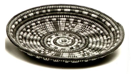 Kasvinjuurista nauhatekniikalla punottu laakea vatimainen tarjotin (berb. isuggi, diminut. tisuggit). Tummanruskeilla kuiduilla on astiaan punottu selviä keskustasta reunoille suuntautuvia säteitä. Kuvioinnissa on myös käytetty vihreitä kuituja.