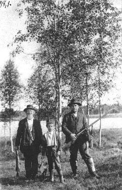 | postikortti: metsästäjiä ja kalastajia saaliineen |