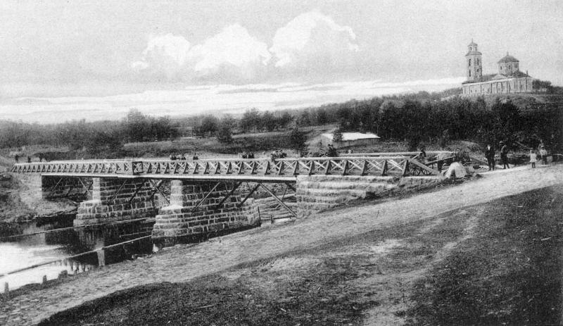 | postikortti: Tulemajoen ylittävä silta, taustalla Nikolainkirkko |