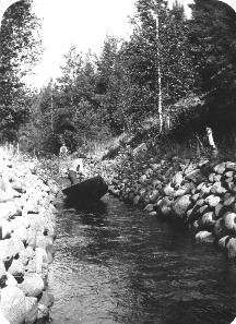 | valokuva: kanava (kaivettu järvenlaskua varten) ja veneilijä |