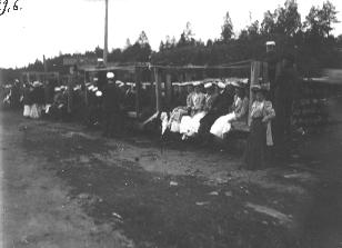 | valokuva: osakuntalaiset lähdössä aamuyöllä Välimäeltä, kesäjuhlat |