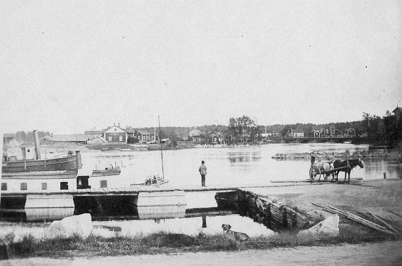 Joensuun satama... hevonen, laiturit, puurakennukset, joet |