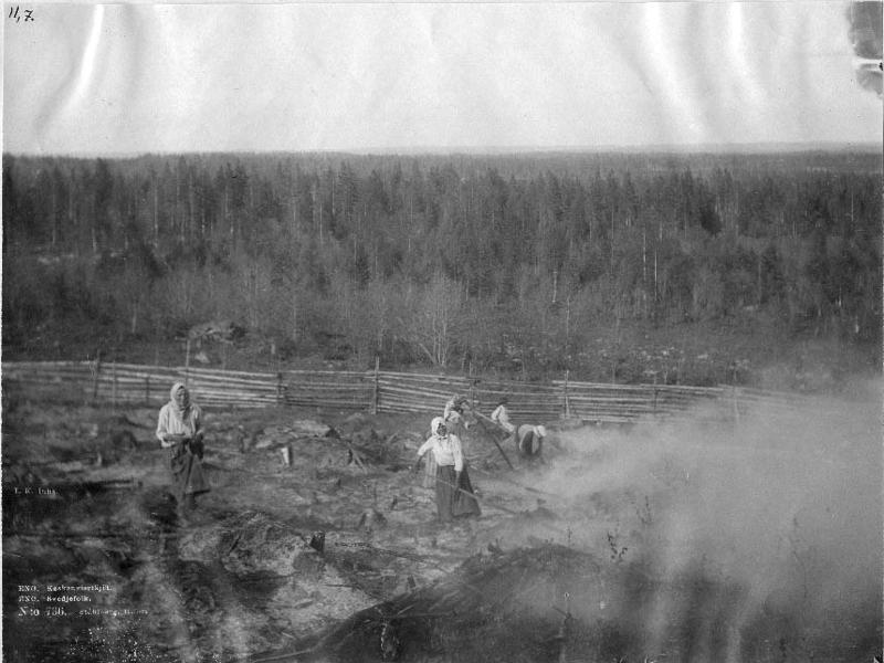 kaskenviertäjiä puut, kaskiviljely, huivit |