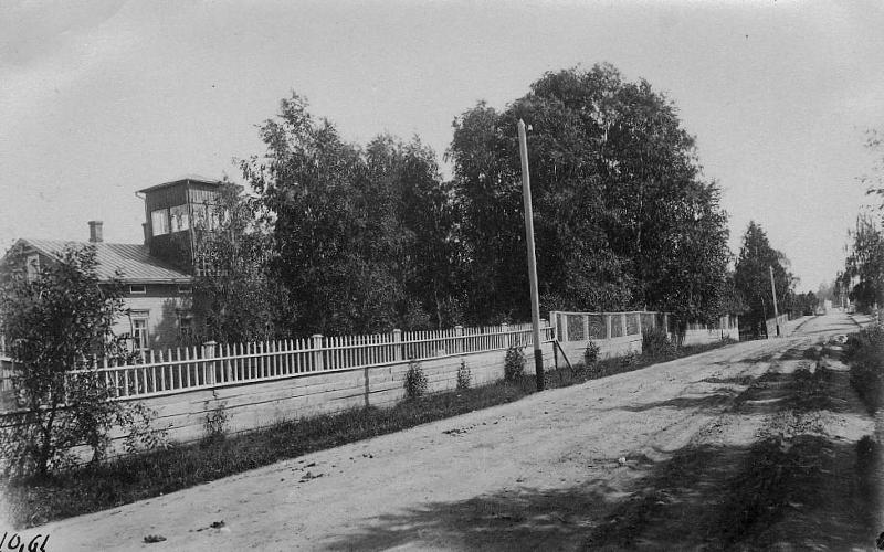 katunäkymä katu, puurakennukset, aita |
