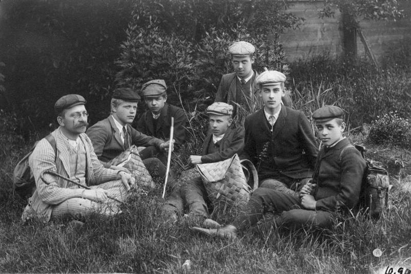 | asiasana | solmiot, retkeily, opettajat, viikset, oppilaat, pojat, tuohityöt, reput, silmälasit |