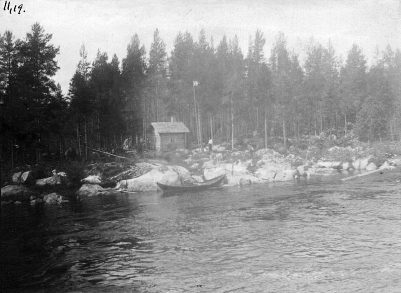 | valokuva: tukkilaisen mökki Pielisjoella |