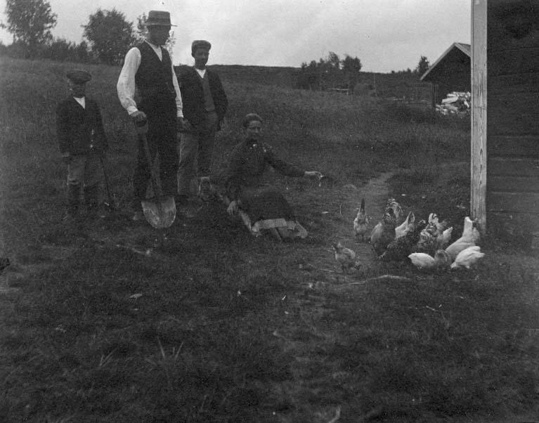 | valokuva: kanoja ruokitaan kansakoulun kulmalla |