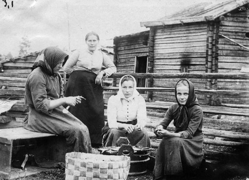 | valokuva: Pitkälän tytöt kaloja perkaamassa |