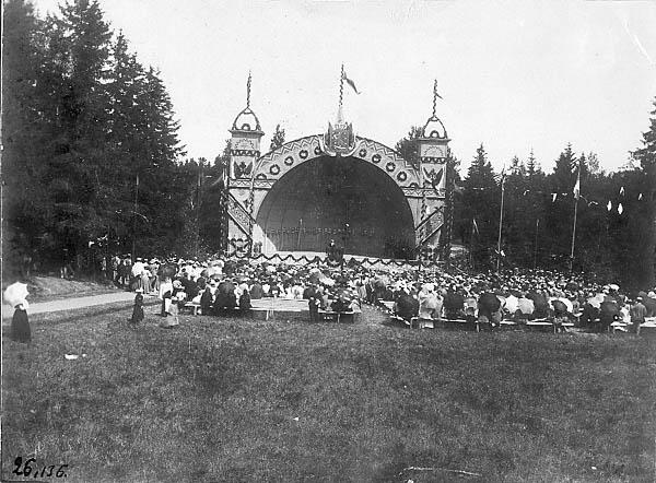 | valokuva: Kansanvalistusseuran yleiset laulu- ja soittojuhlat, J. R. Danielson puhuu |