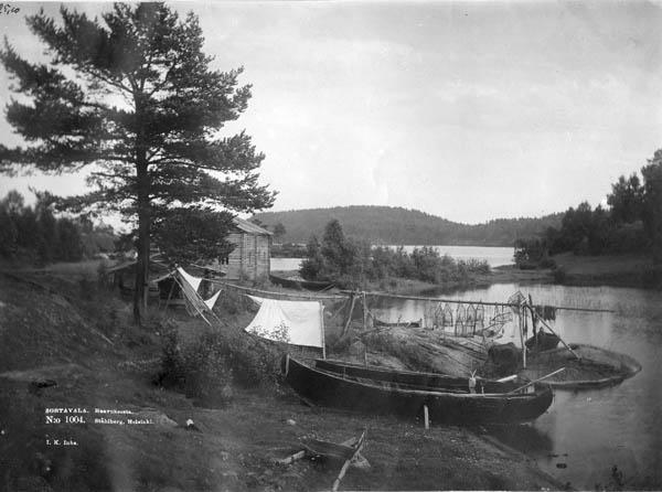 | vaihtoehtoinen nimike | kuvassa edessä laatokanmallisia veneitä, mertoja ja nuotan- ja verkonkuivaustelineitä |