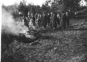 | valokuva: Sortavalan lyseolaisia "potattiretkellä", kiviä kuumennetaan perunakuoppaan |