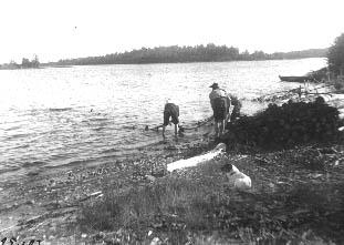 | valokuva: verkkoa vedetään rantaan |