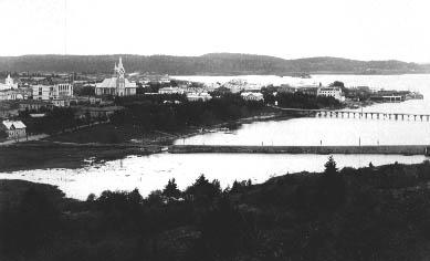 näkymä Vakkolah... silta, lahdet, kirkkorakennukset |