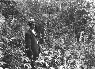 | valokuva: K. H. Hällström ja ukonhattu-kasveja (aconitum lycoctonum) |