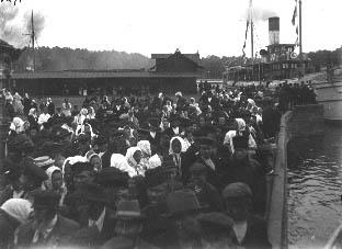 väkeä saapumass... turismi, päähineet, höyrylaivat, huivit |