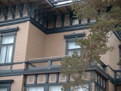 Espooseen 1800-luvulla rakennetuista huviloista on Karhusaari rakennustaiteellisesti mielenkiintoisin ja monine talousrakennuksineen arvokkain kokonaisuus. Huvilan rakennutti kauppaneuvos Nicolas Sinebrychoff, jolle Björnholma erotettiin samalle suvulle kuuluvasta Hagalundin kartanosta 1890. Nicolas Sinebrychoff johti jonkin aikaa isänsä jälkeen sukunsa nimeä kantavan panimon toimintaa, mutta tunnetummaksi hän on tullut purjehtijana. Karhusaaren huvilan suunnitteli 1890-luvun alussa Sinebrychoffien perhetuttava, arkkitehti ja vapaaherra Karl August Wrede, joka samoihin aikoihin oli piirtänyt myös suuren liikepalatsin Helsinkiin. K.A. Wrede oli juuri palannut opintomatkalta Etelä-Euroopasta, ja Karhusaaren huvila onkin kuin Italiasta Suomeen siirretty renesanssipalatsi, jossa tosin tiili on rakennusmateriaalina korvattu puulla. Rakennuksessa on erikoinen tasakattoratkaisu ja huomattavan leveä korostettu räystäs, jonka alla on kasetointi. Molemmat kerrokset ovat selvästi toisistaan listoituksin erotettu. Huvila on rakennettu korkealle lohkokivijalalle, joka jatkuu pengerryksenä. Myös Karhusaaren kiinteä sisustus on ulkoarkkitehtuurin kanssa sopusointuisesti uusrenesanssia. Erityisesti kattomaalaukset (mahd. Salomon Vuorio), kaakeliuunit, paneloinnit, ovet, porraskaiteet jne ovat erittäin huolellisesti tehtyjä. Paitsi huvila, Karhusaari oli myös pienoismaatila, johon liittyi suuri määrä erilaisia talous- ja apurakennuksia (mm. kellarirakennus, jonka päällä on huvimaja, suuri sauna, työväen asuntoja, talli, viljamakasiini, navetta, sikala, kasvihuone, meijeri, puutarhurin asunto, vaunuliiteri jne). Osa rakennuksista on purettu, mutta suurin osa on yhä jäljellä. Huvilan ympärillä on ollut suurehko puisto. Hagalundin suuntaan johtanut puukuja on häviämässä. Jorvaksentien (Länsiväylä) rakentaminen 1933-37 ja erityisesti sen leventäminen 1960-luvulla katkaisi osittain huvilan yhteyden mereen. Tien alle jäi mm. komea laituri uimahuoneineen ja venevaja. Huvilan vieressä on Krimin sodan aikaisia patterivalleja.