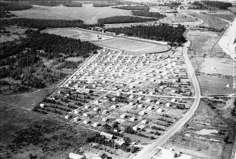 Äimäraution siirtolapuutarja ja Oulun ravirata. Taustalla lentokenttä.