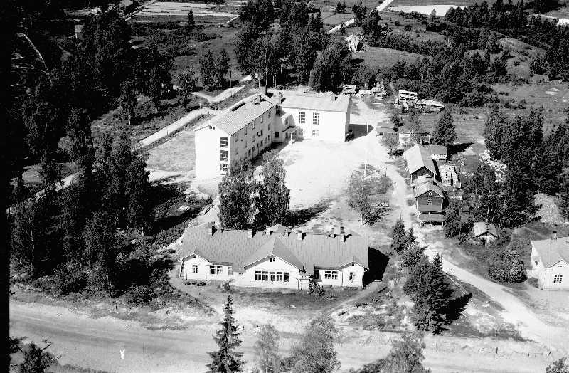 Edessä alakoulu ja takana koulurakennus jossa luokat 3-5 ja jatkoluokat (kansalaiskoulu), juhlasali ja ruokala.