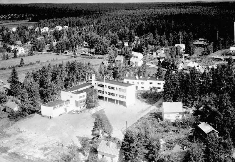 Kuvassa Tehtaanmäen koulu Inkeroisissa (ent. Sippolan kunnan taajama, nyk. Kouvola). Alvar Aallon suunnittelema koulurakennus valmistui v. 1940.