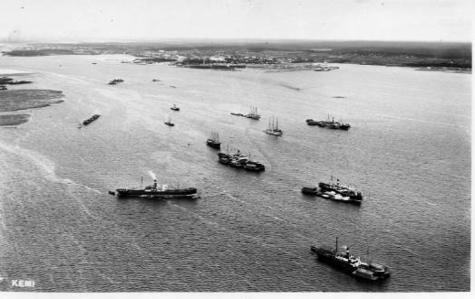 | ilmavalokuva: Kemi, puutavaran lastausta |