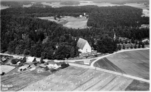 Kuvassa on Pohjan kirkko, ei Raision.http://www.kulttuurisampo.fi/kulsa/item.shtml?itemUri=http%3A%2F%2Fkulttuurisampo.fi%2Fannotaatio%23ilmakuva_p_19507776