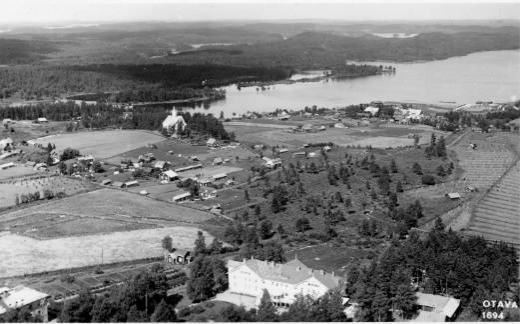 Etualalla Otavan opisto, taustalla Otavan kirkko entisessä Mikkelin maalaiskunnassa.