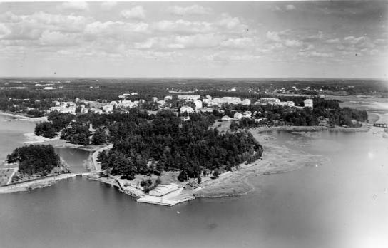 Keskellä kuvaa Pikkuniemi, taustalla Munkkiniemi, vasemmalla Pikku Kuusisaari.
