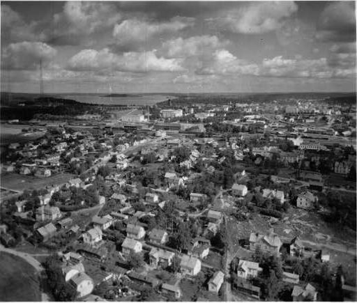 | ilmavalokuva: Lahti, laaja yleiskuva, omakotiasutusta, ulkorakennukset, puutarhat |
