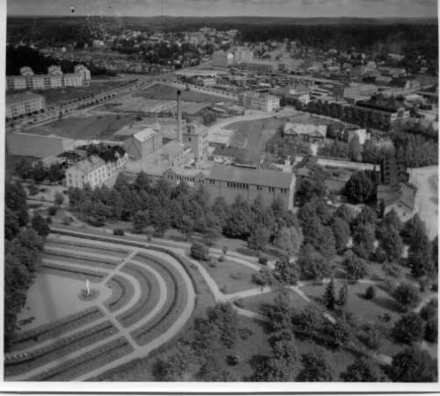 | ilmavalokuva: Lahti, näkymä Kirkkopuiston kohdalta Mallasjuoma Oy:n ja Kivimaan ? suuntaan |