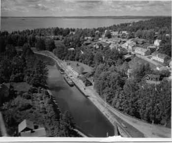 | ilmavalokuva: Asikkala, Vääksyn kanava, rakennettu 1868-71, uusittiin perusteellisesti 1908-11, pituus 1306 m |