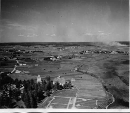 | ilmavalokuva: Lappajärvi, näkymä kirkon suunnalta kylää kohti |