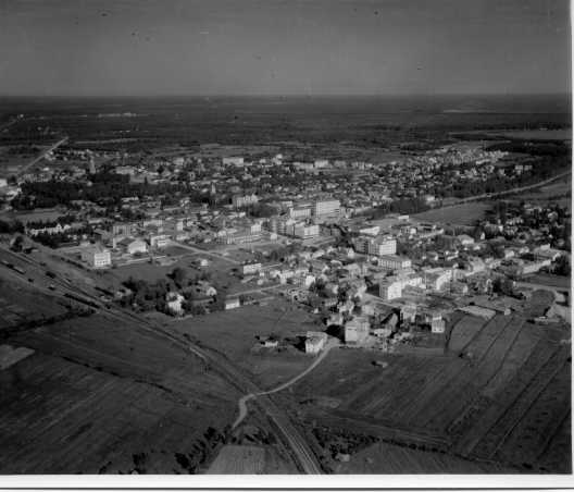 | ilmavalokuva: Kokkola, laaja yleisnäkymä kaupunkiin rautatien suunnasta |