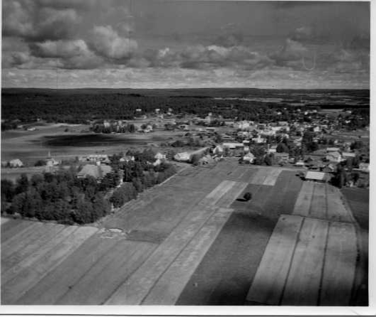 | ilmavalokuva: Orivesi, kirkko (Matti Åkerblom 1800) häämöttää puiden takaa, kirkko paloi 1958 |