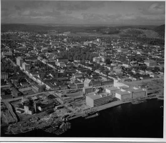 | ilmavalokuva: Kuopio, kaupungin keskustaa Kuopionlahden suunnalta kuvattuna |