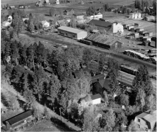 Kuvan rakennukset sijaitsivat vastapäätä Ryttylän rautatieasemaa, joka on piilossa puiden takana.