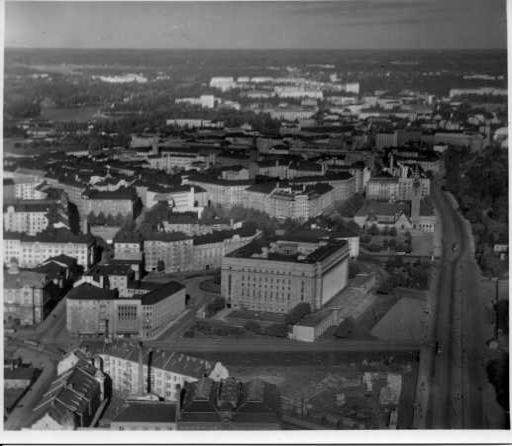 | ilmavalokuva: Helsinki, Eduskuntatalo, kansallismuseo, Mannerheimintie, kerrostaloja |